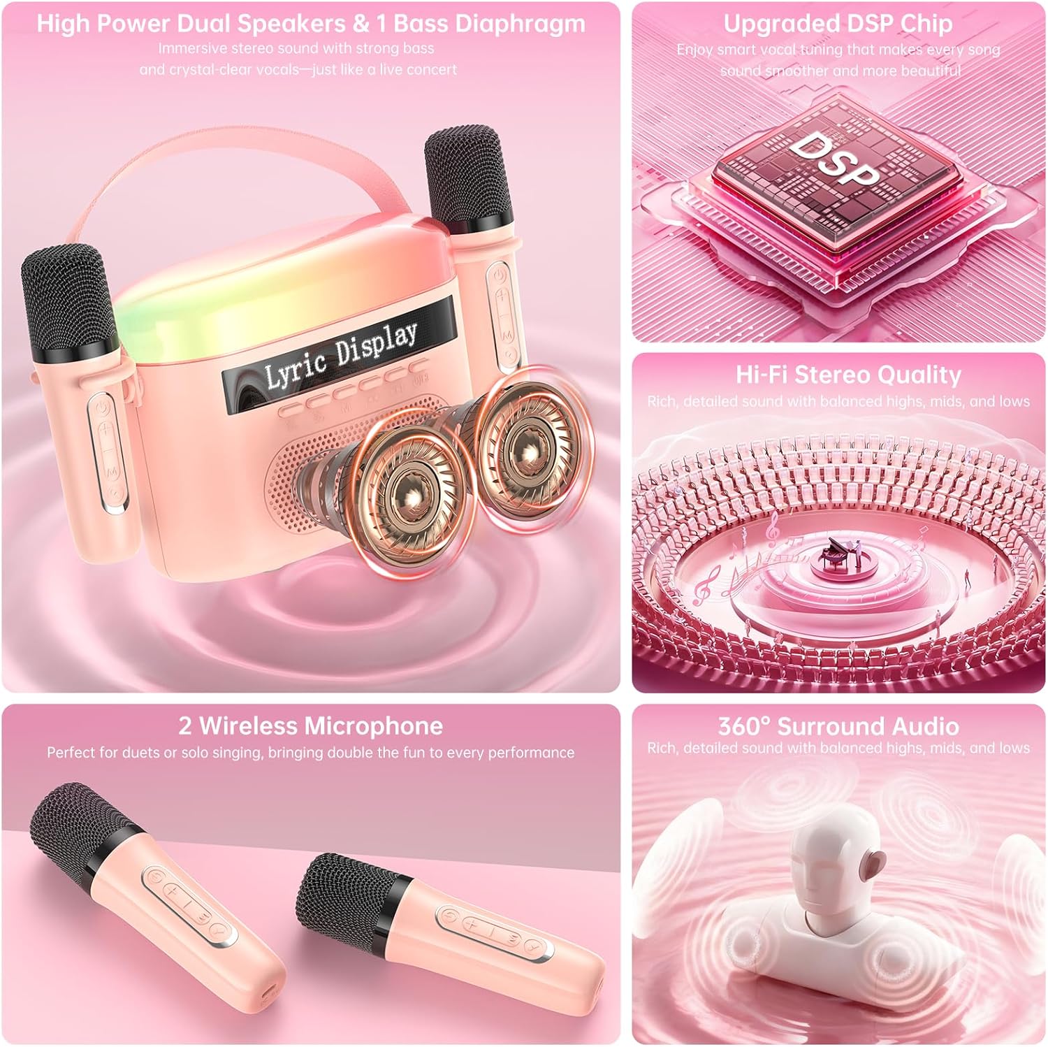 Two Wireless Microphones for Duets & Fun - Includes 2 wireless microphones karaoke machine for kids and adults, allowing you to sing duets or solo without interruptions. Great as a birthday gift karaoke set for children or portable party speaker with mic